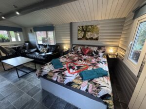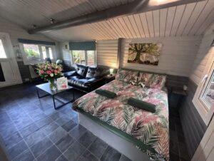 Cosy and beautiful traditional log cabin with modern facilities & a modern twist in the decor.
